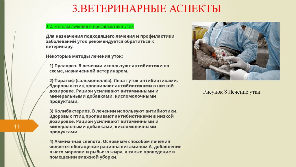 3.ВЕТЕРИНАРНЫЕ АСПЕКТЫ3.2. методы лечения и профилактики уток