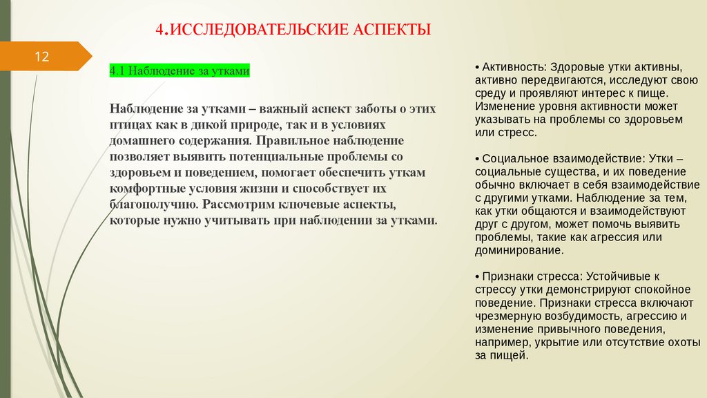 1. Значение наблюдения: Регулярное наблюдение за утками позволяет своевременно выявлять изменения в их поведении и состоянии