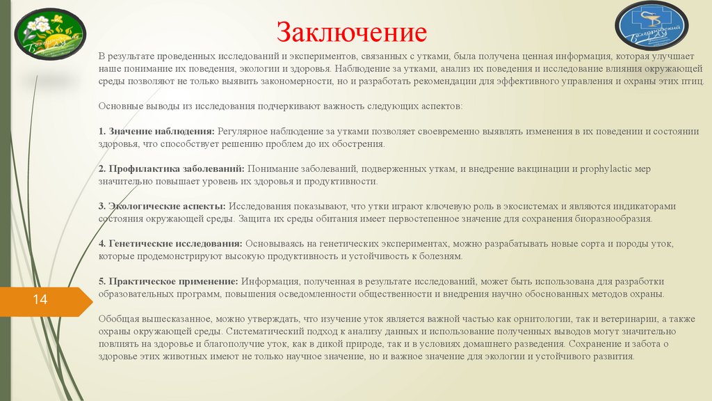 ЗаключениеВ результате проведенных исследований и экспериментов, связанных с утками, была получена ценная информация, которая улучшает