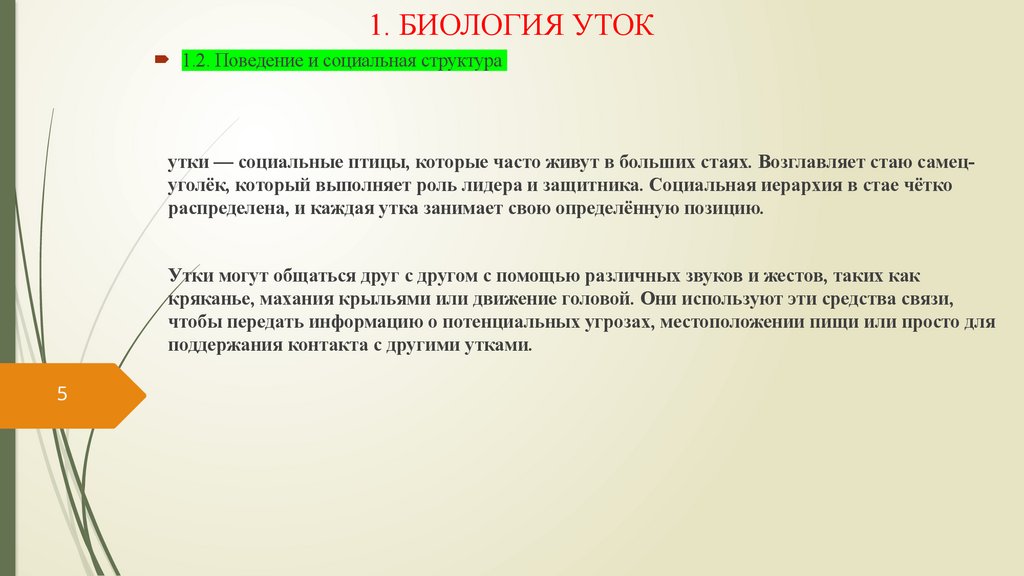 1. БИОЛОГИЯ УТОК1.2. Поведение и социальная структура