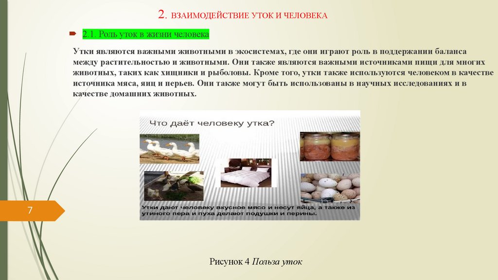 2. ВЗАИМОДЕЙСТВИЕ УТОК И ЧЕЛОВЕКА2.1. Роль уток в жизни человека