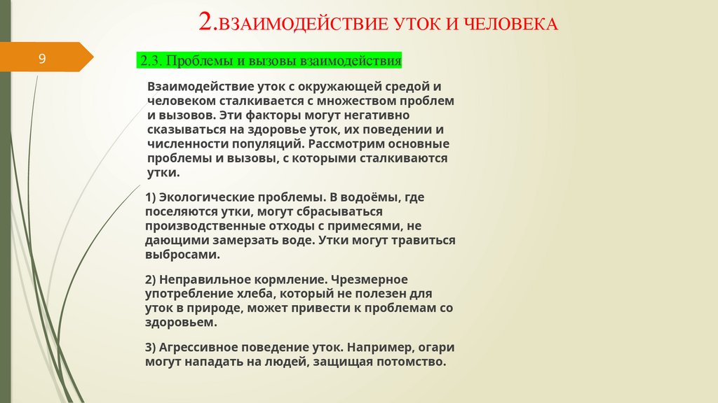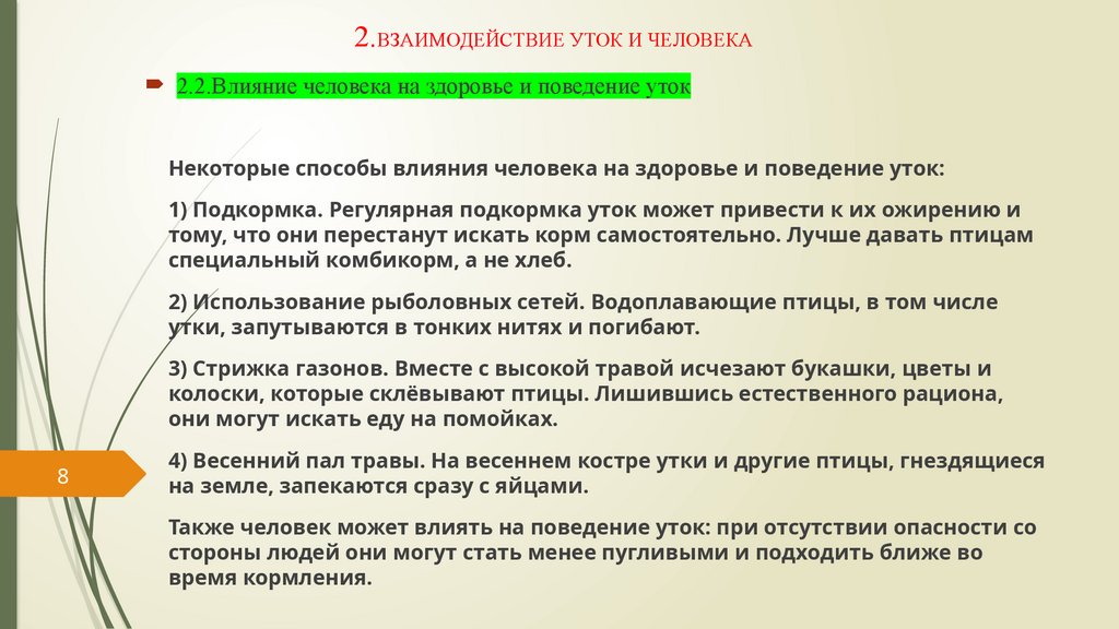 2.ВЗАИМОДЕЙСТВИЕ УТОК И ЧЕЛОВЕКА2.2.Влияние человека на здоровье и поведение уток