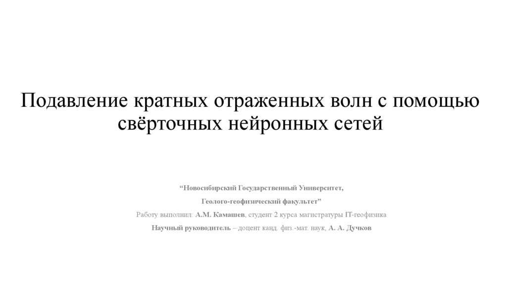 Подавление кратных отраженных волн с помощьюсвёрточных нейронных сетей