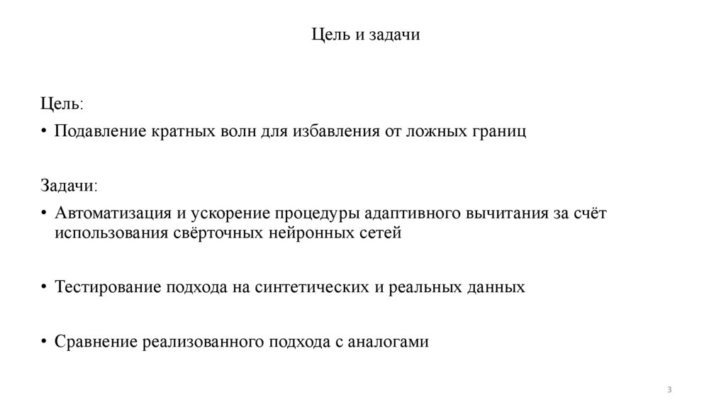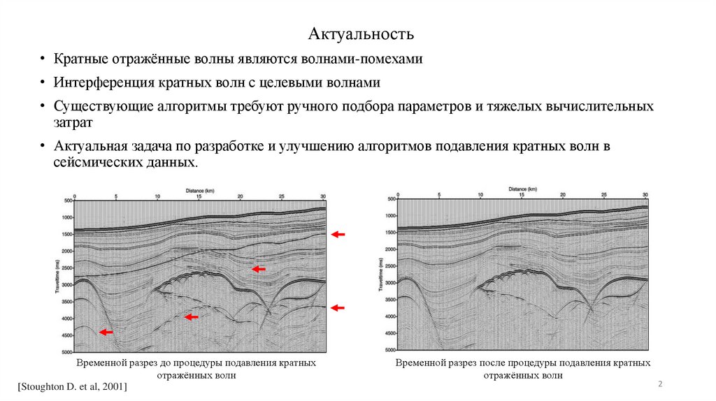 • Актуальная задача по разработке и улучшению алгоритмов подавления кратных волн в
