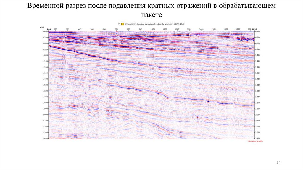 Временной разрез после подавления кратных отражений в обрабатывающемпакете