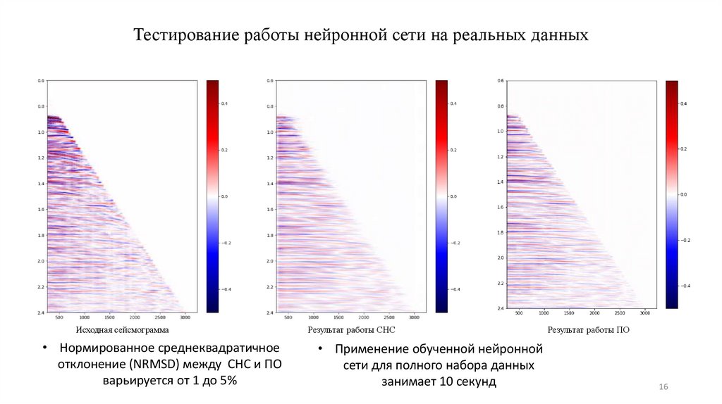 Тестирование работы нейронной сети на реальных данныхИсходная сейсмограмма