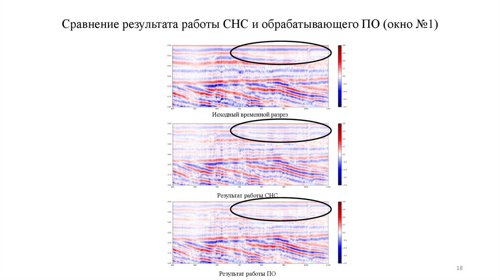Сравнение результата работы СНС и обрабатывающего ПО (окно №1)Исходный временной разрез