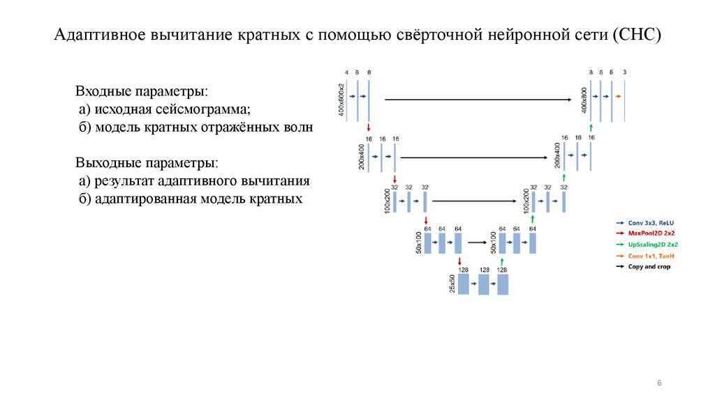 Адаптивное вычитание кратных с помощью свёрточной нейронной сети (СНС)Входные параметры: