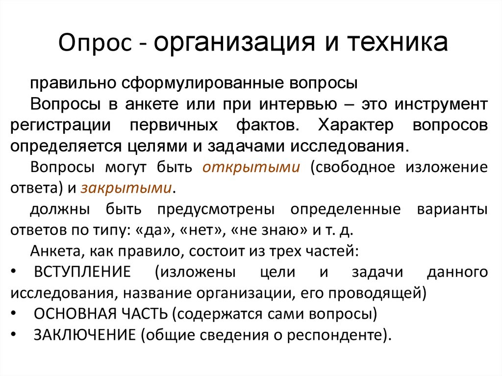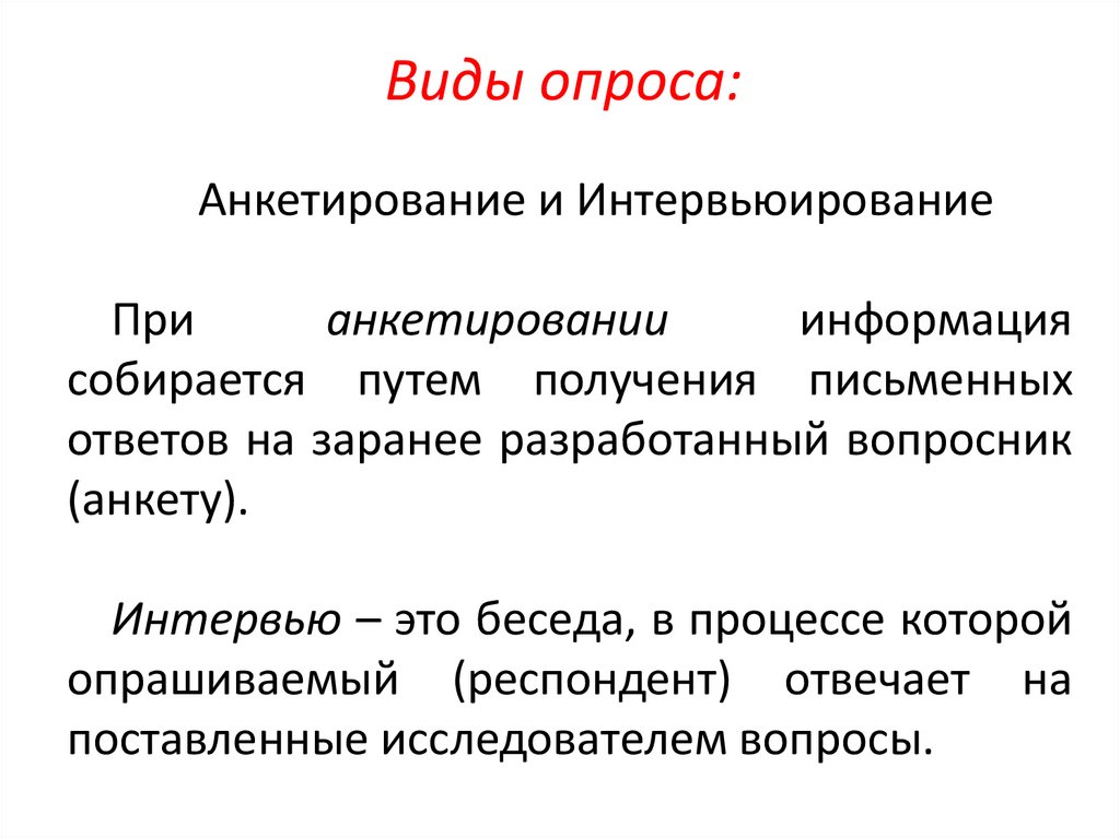 Опросы могут быть очные и заочные, письменные и устные, по общим и