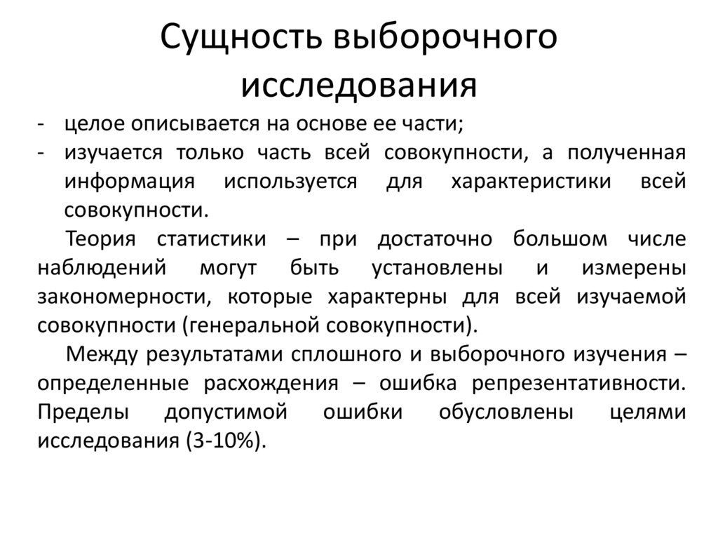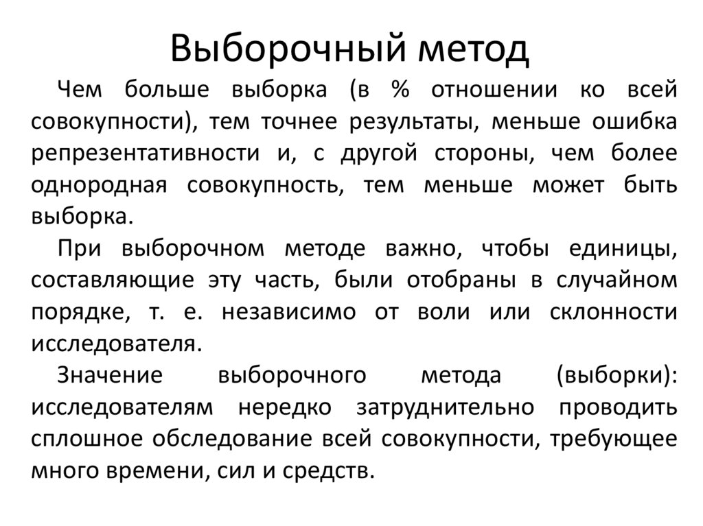 Выборочный методЧем больше выборка (в % отношении ко всей