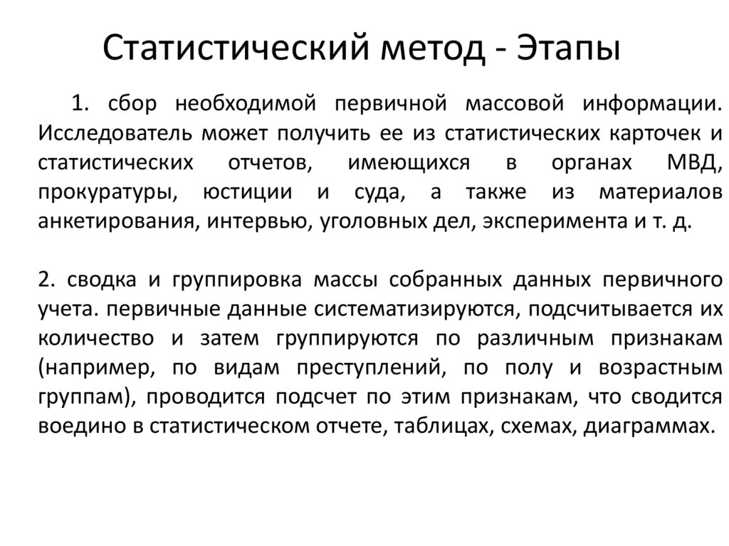Статистический метод - Этапы1. сбор необходимой первичной массовой информации.