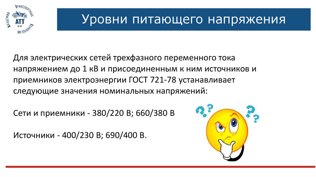 Уровни питающего напряжения. сетей трехфазного переменного тока