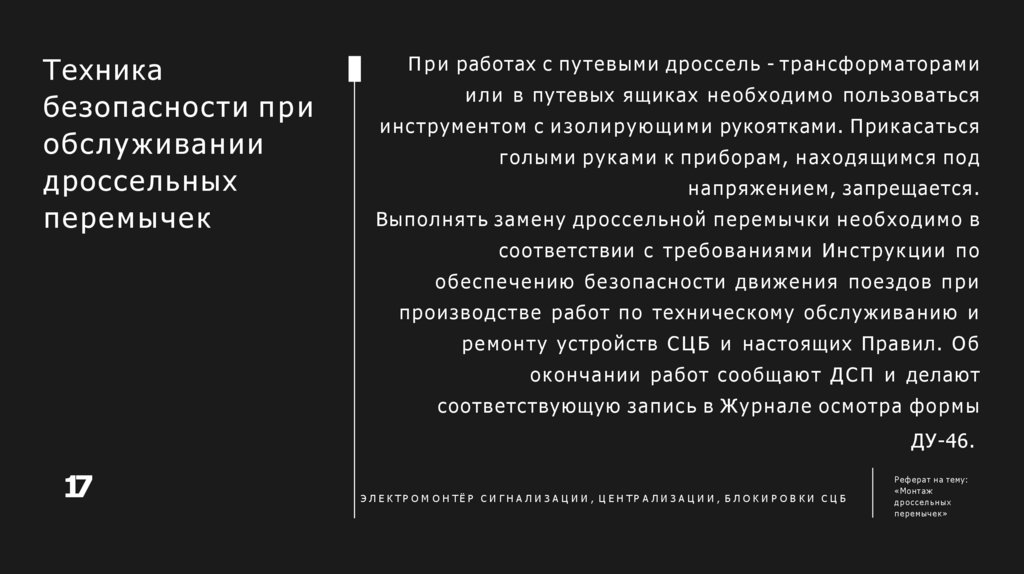 Техника безопасности п р и обслуживании дроссельных п еремычек