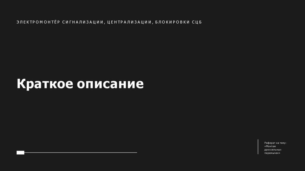 Э Л Е К ТР О М О Н ТЁ Р С И Г Н А Л И З А Ц И И , Ц Е Н ТР А Л И З А Ц И И , Б Л О К И Р О В К И С Ц БКраткое описание
