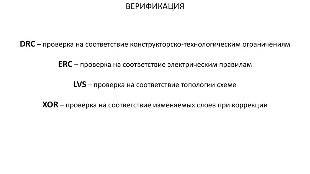 ВЕРИФИКАЦИЯDRC – проверка на соответствие конструкторско-технологическим ограничениям