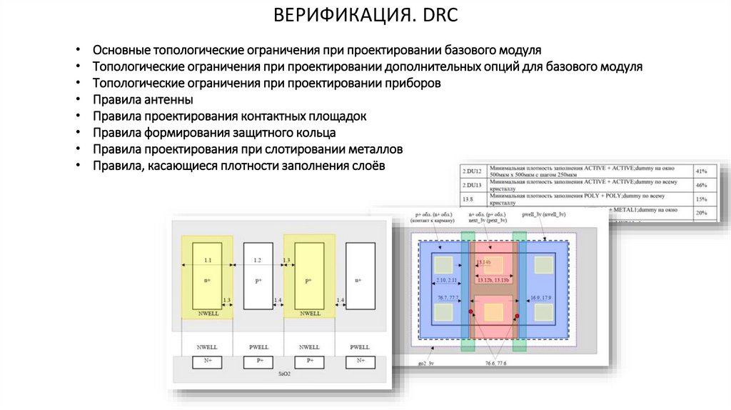 ВЕРИФИКАЦИЯ. DRCОсновные топологические ограничения при проектировании базового модуля