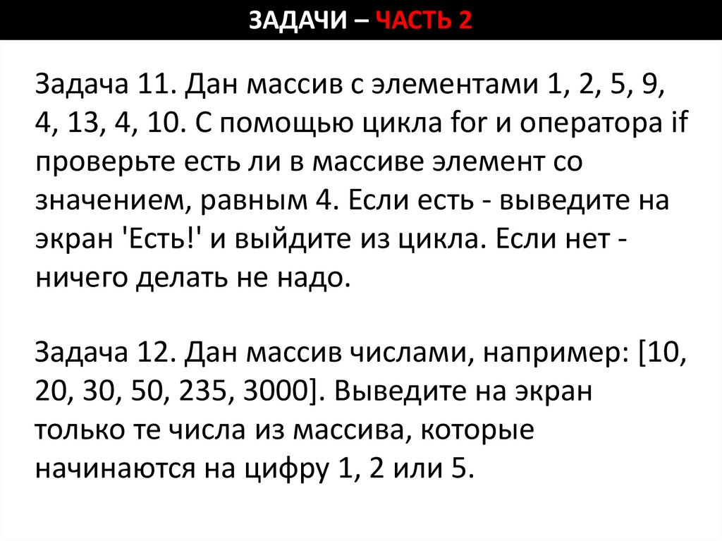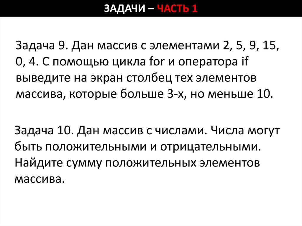 ЗАДАЧИ – ЧАСТЬ 2Задача 11. Дан массив с элементами 1, 2, 5, 9,