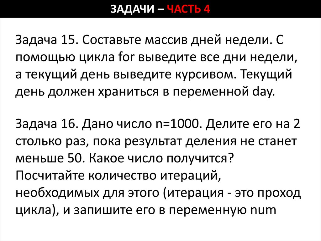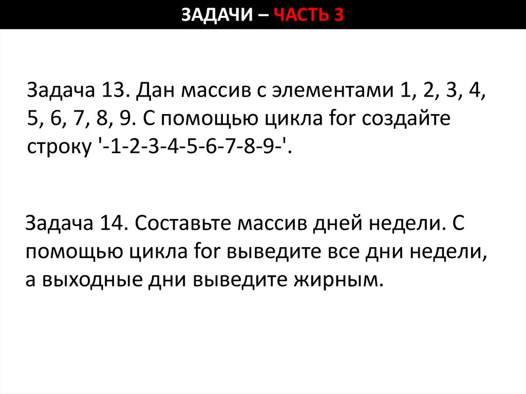 ЗАДАЧИ – ЧАСТЬ 4Задача 15. Составьте массив дней недели. С
