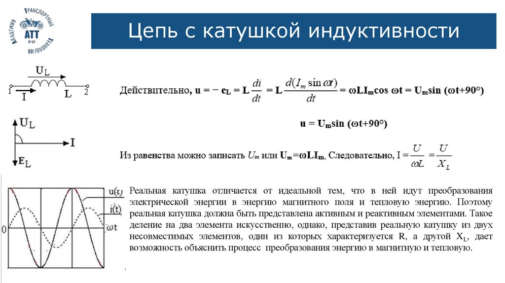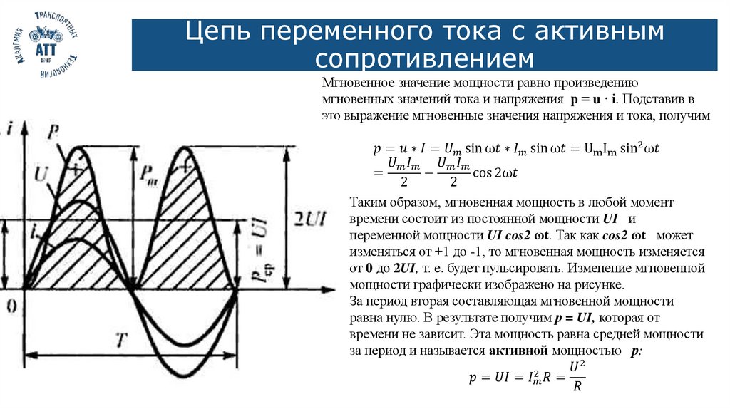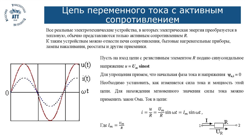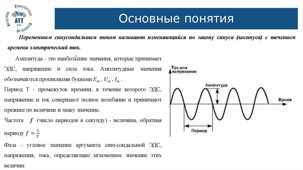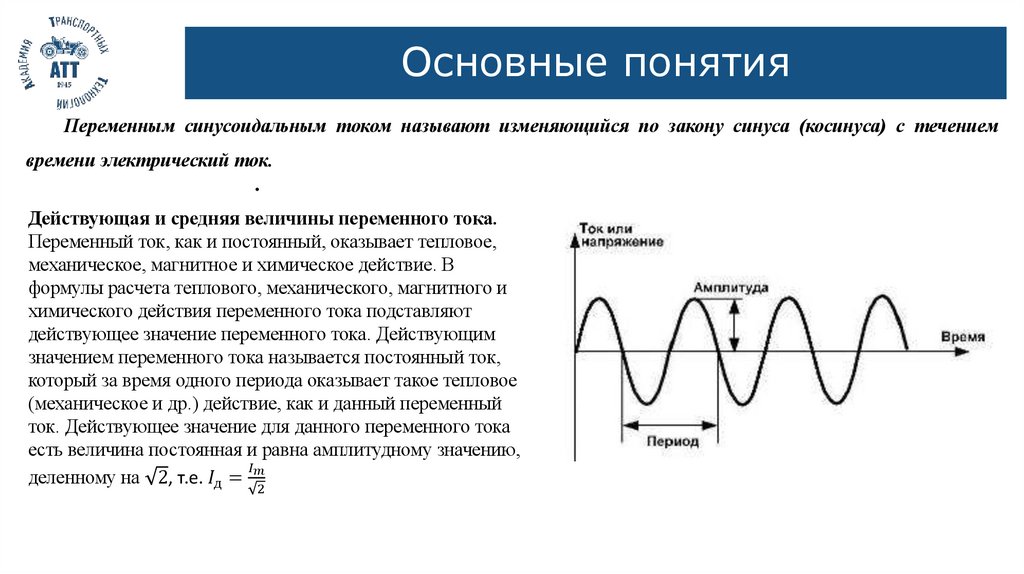 Основные понятияПеременным синусоидальным током называют изменяющийся по закону синуса (косинуса) с течением