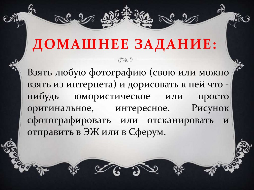 ДОМАШНЕЕ ЗАДАНИЕ:Взять любую фотографию (свою или можно