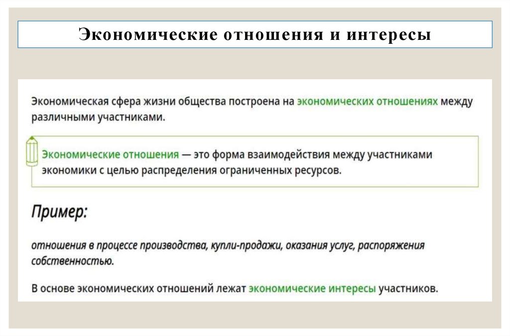 Экономические отношения и интересы