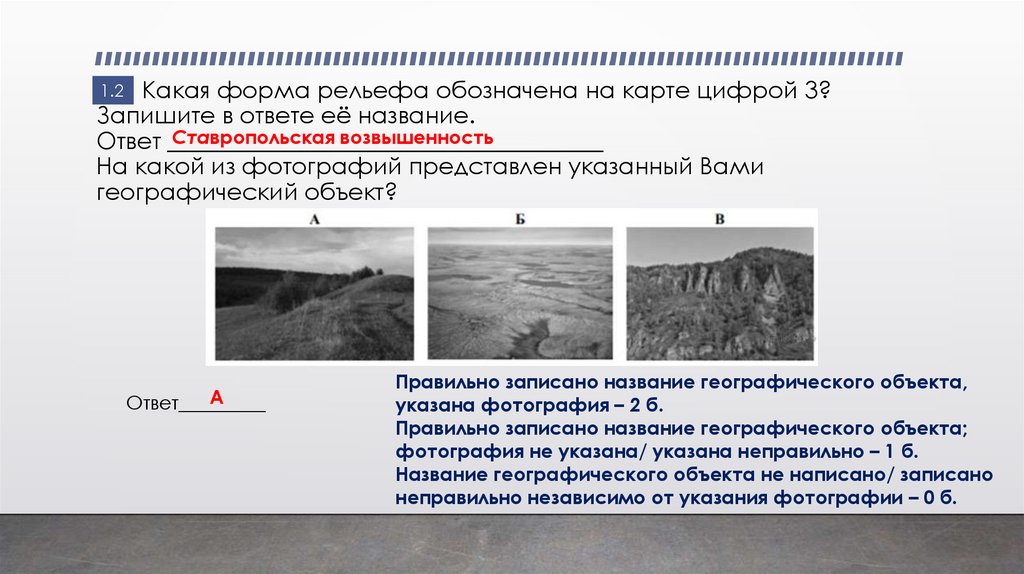1.2 Какая форма рельефа обозначена на карте цифрой 3?1.2.
