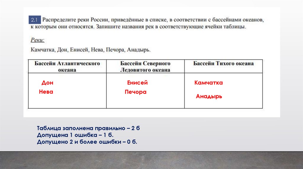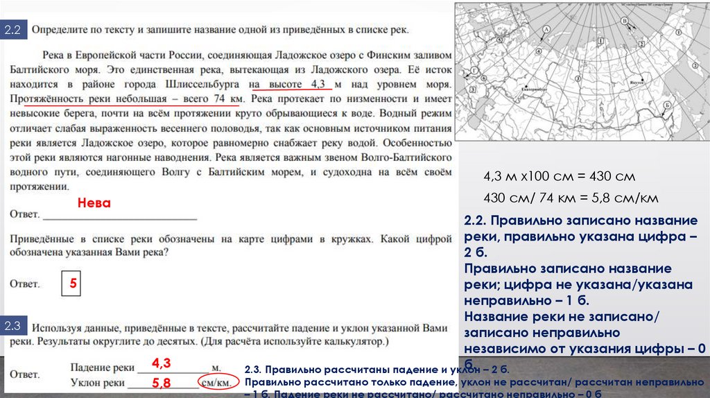 – 1 б. Падение реки не рассчитано/ рассчитано неправильно – 0 б