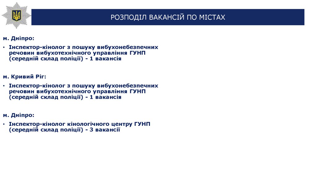 (середній склад поліції) - 3 вакансії