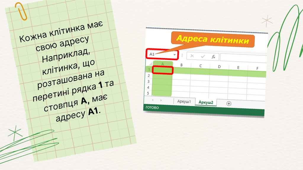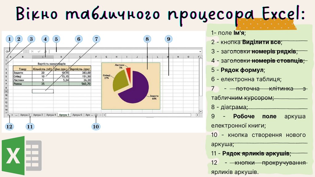 Вікно табличного процесора Excel:1- поле Ім'я;