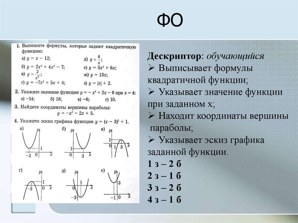 Квадратичная функция и её свойства