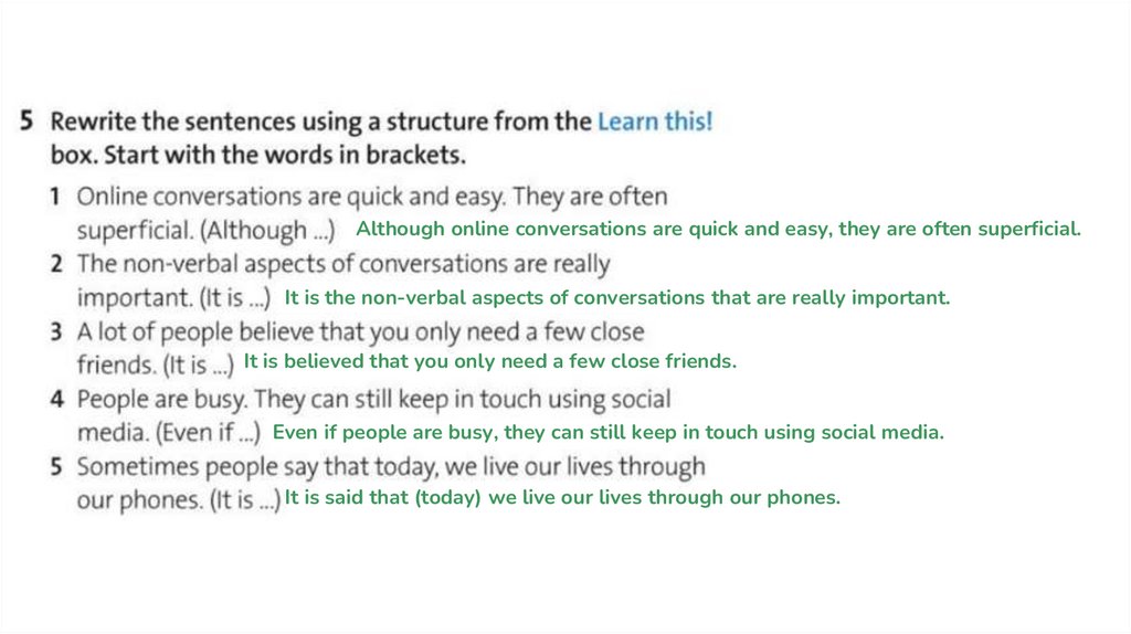 Although online conversations are quick and easy, they are often superficial.It is the non-verbal aspects of conversations that are really important.