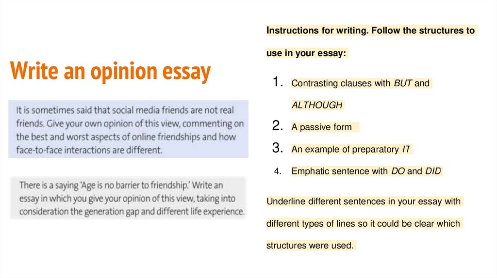 Instructions for writing. Follow the structures toWrite an opinion essay