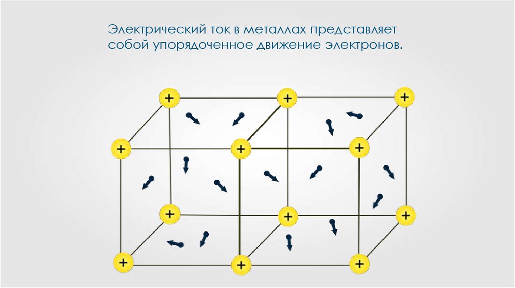 Электрический ток в металлах представляетсобой упорядоченное движение электронов.