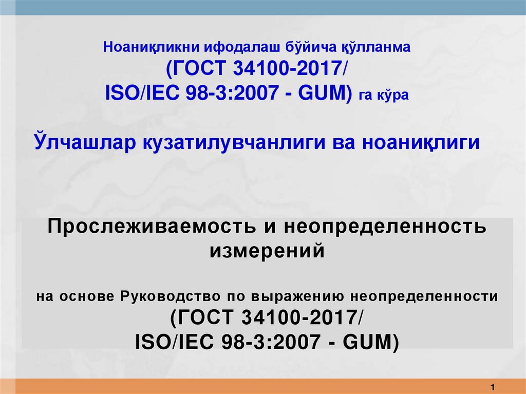 Ўлчашлар кузатилувчанлиги ва ноаниқлиги. Ноаниқликни ифодалаш бўйича қўлланма (ГОСТ 34100-2017/ ISO/IEC 98-3:2007 - GUM)