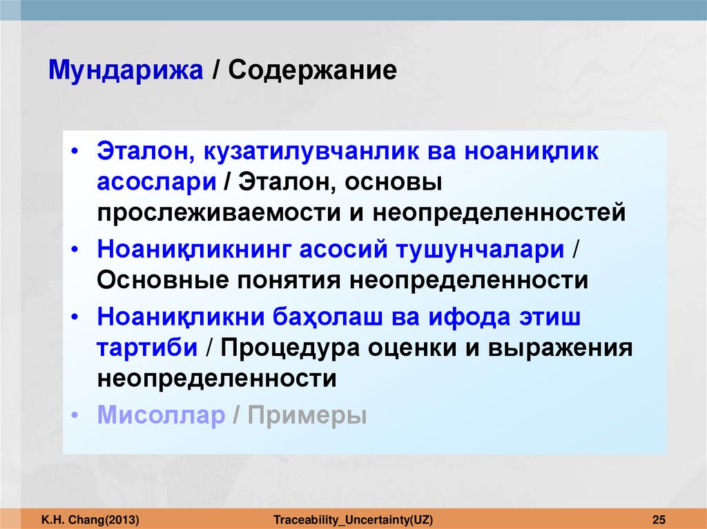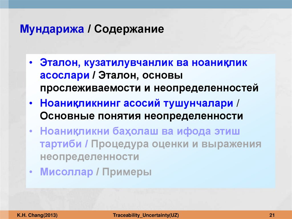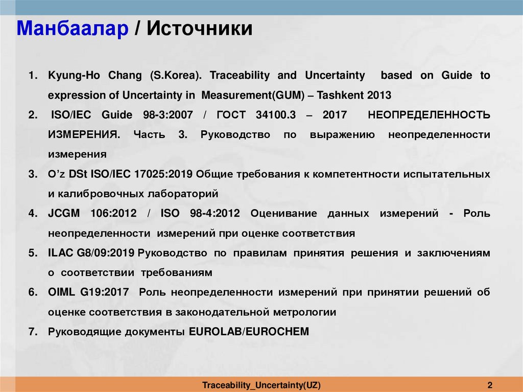 Манбаалар / Источники1. Kyung-Ho Chang (S.Korea). Traceability and Uncertainty