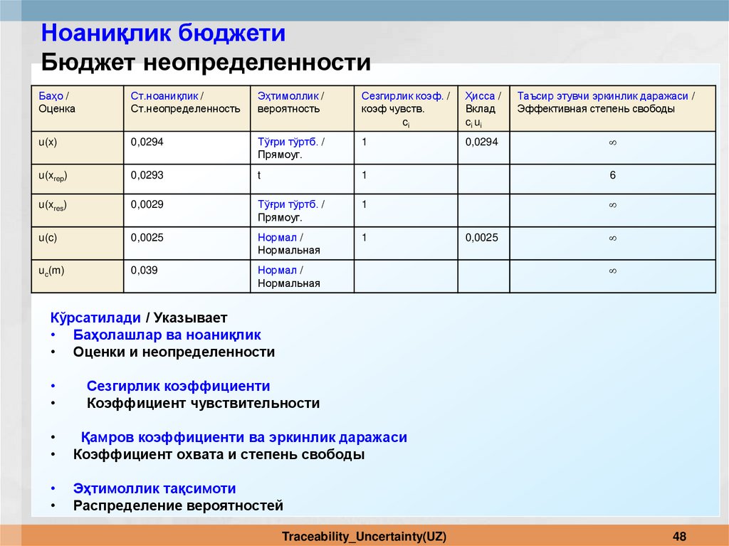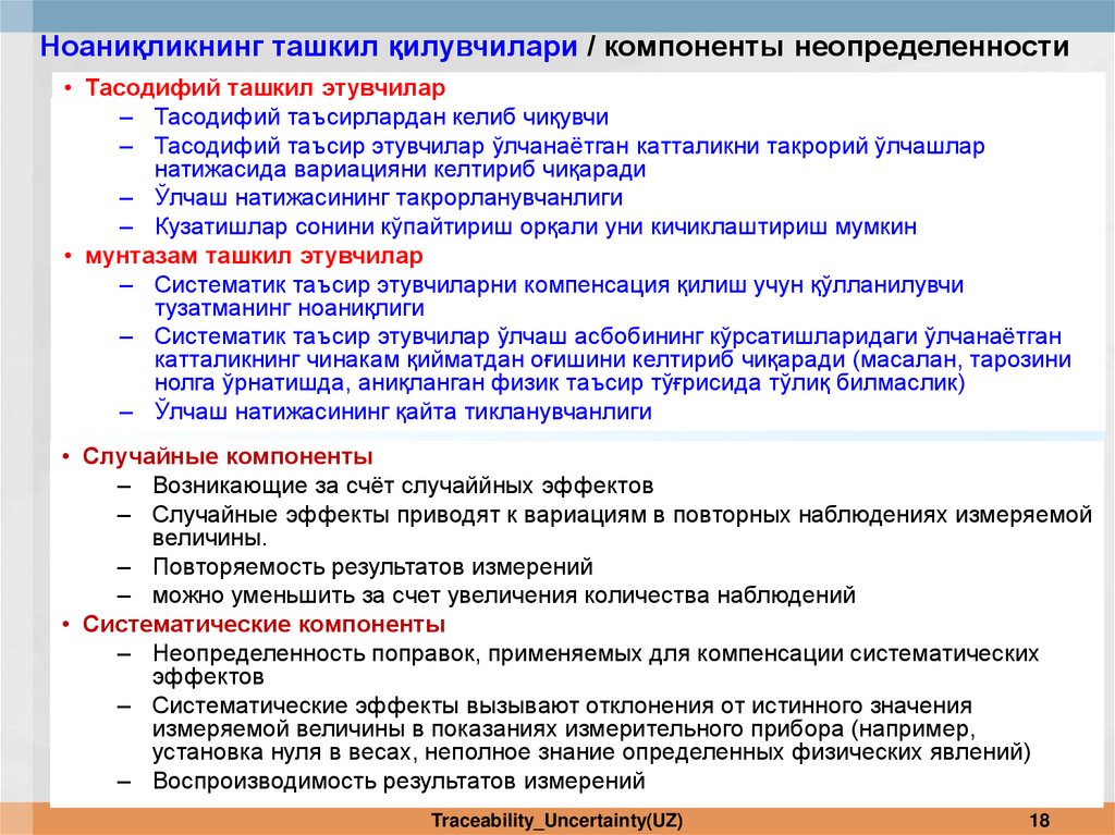 Мундарижа / Содержание• Эталон, кузатилувчанлик ва ноаниқлик