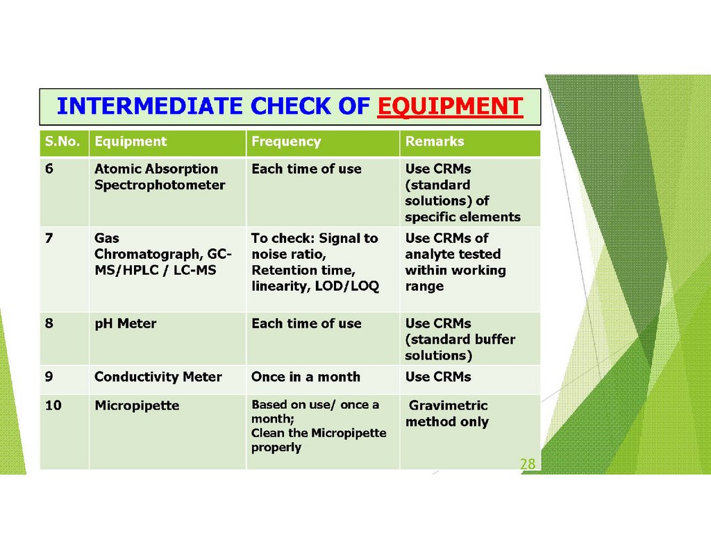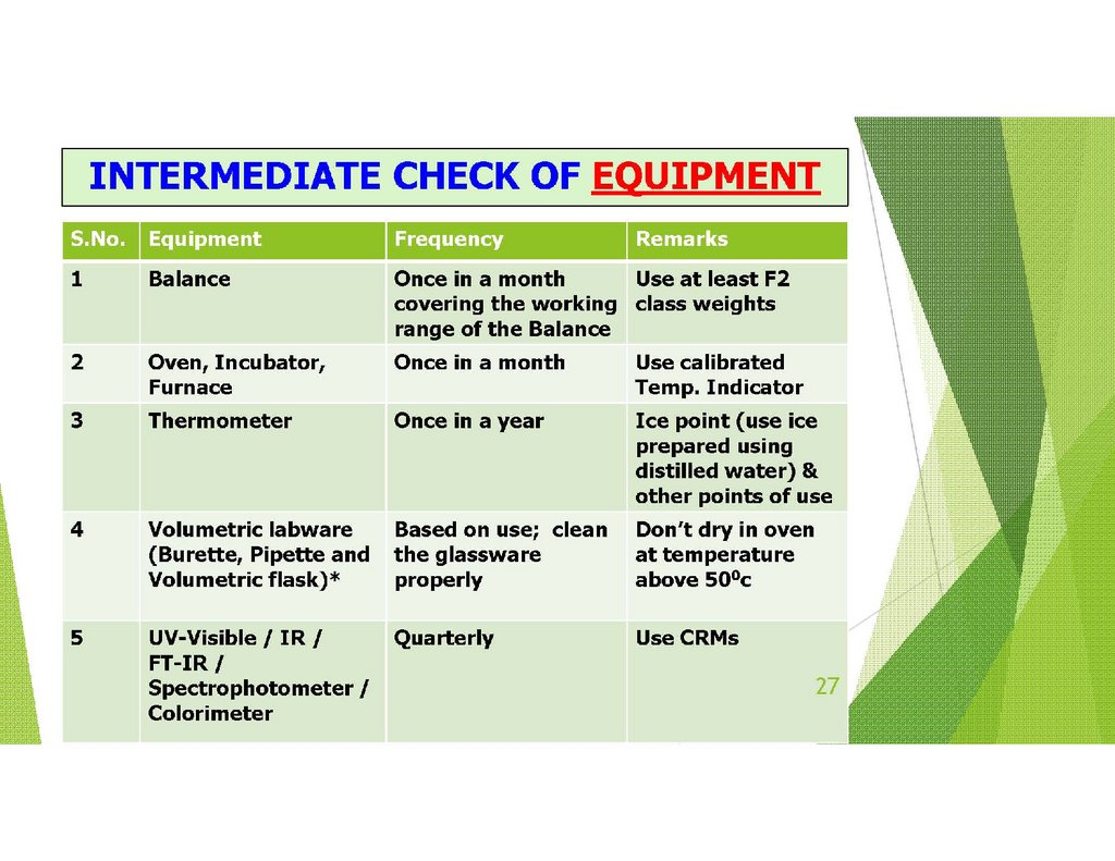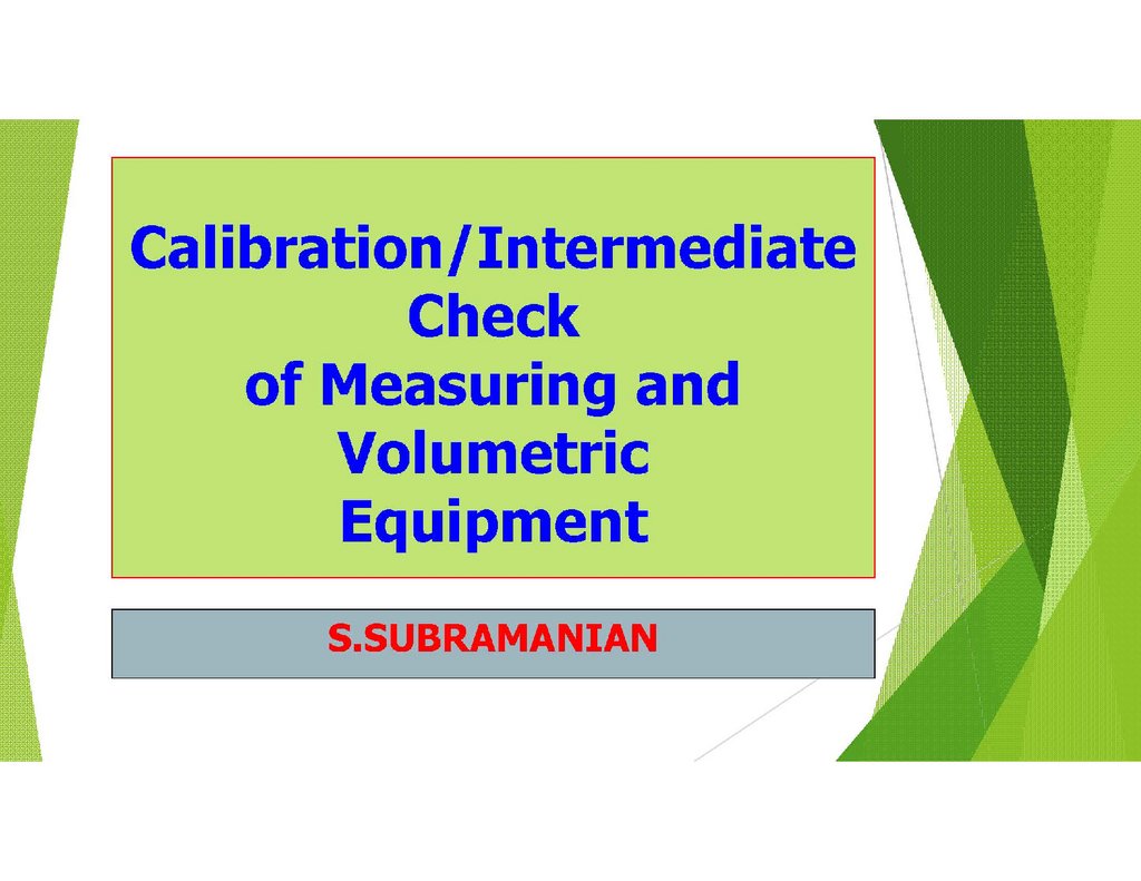 Calibration/Intermediate Check of Measuring and Volumetric Equipment