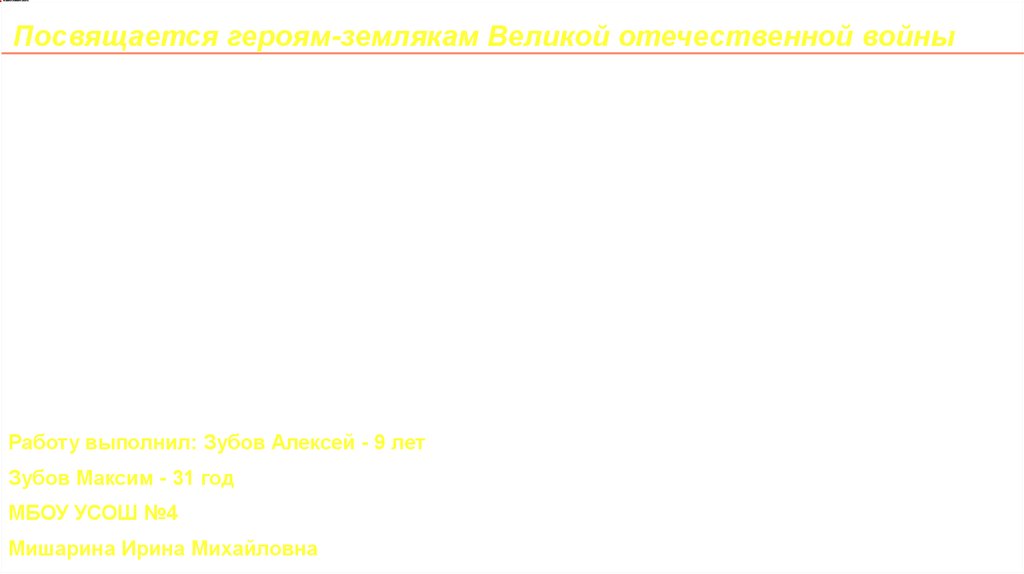 Посвящается героям-землякам Великой отечественной войныРаботу выполнил: Зубов Алексей - 9 лет