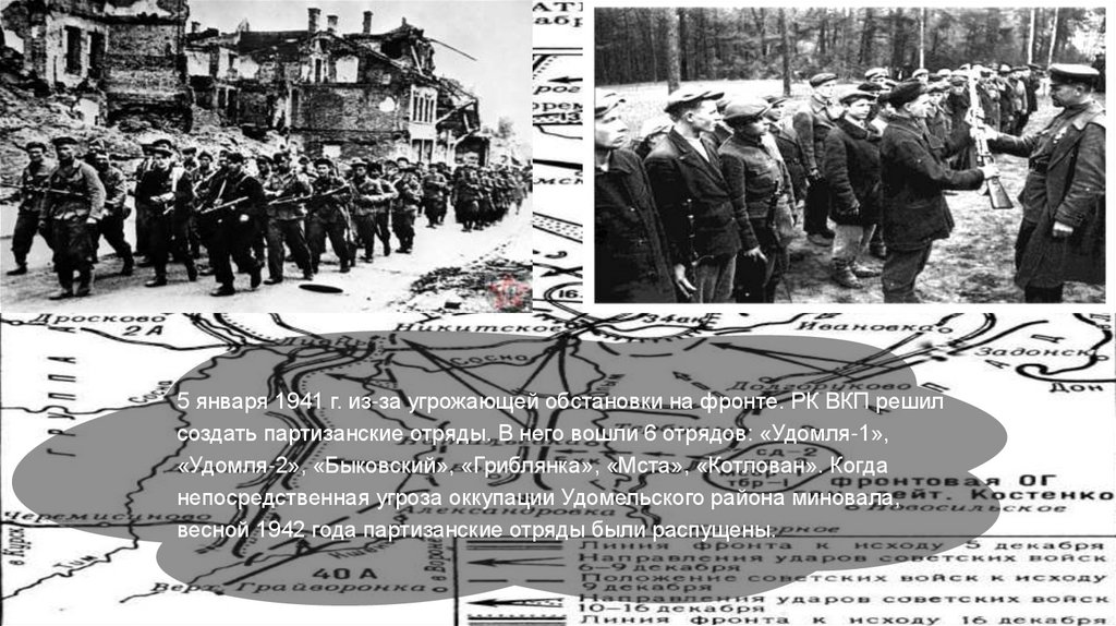 5 января 1941 г. из-за угрожающей обстановки на фронте. РК ВКП решилсоздать партизанские отряды. В него вошли 6 отрядов: «Удомля-1»,