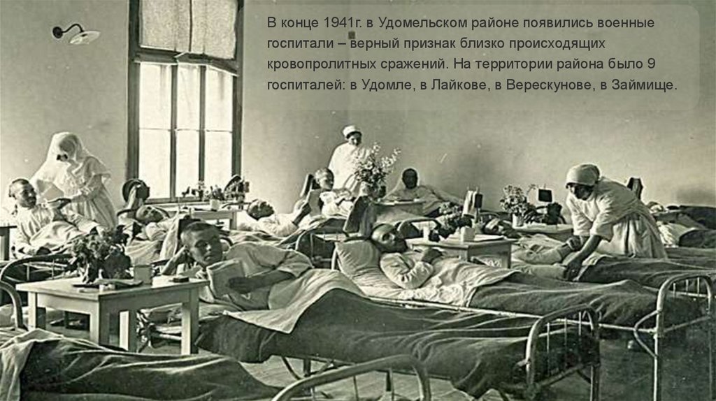 В конце 1941г. в Удомельском районе появились военныегоспитали – верный признак близко происходящих