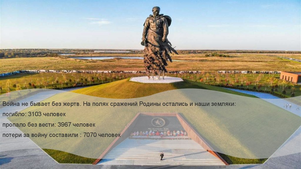 Война не бывает без жертв. На полях сражений Родины остались и наши земляки:погибло: 3103 человек