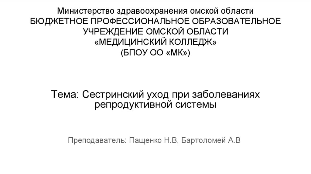 Министерство здравоохранения омской областиБЮДЖЕТНОЕ ПРОФЕССИОНАЛЬНОЕ ОБРАЗОВАТЕЛЬНОЕ