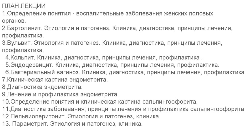 ПЛАН ЛЕКЦИИ1.Определение понятия - воспалительные заболевания женских половых