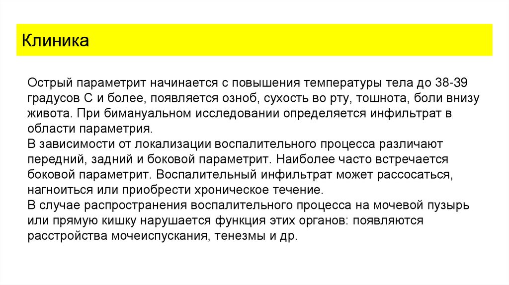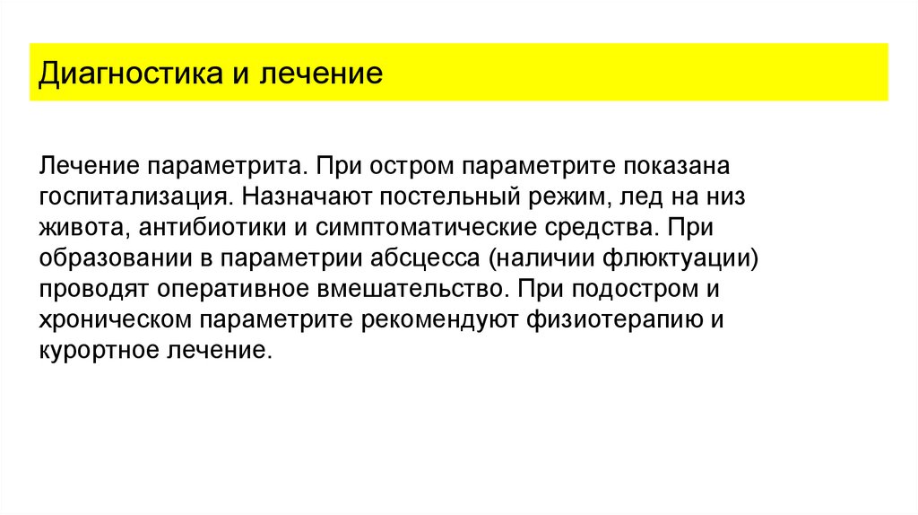 Диагностика и лечениеЛечение параметрита. При остром параметрите показана