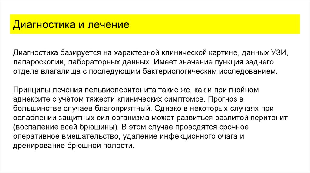 Принципы лечения пельвиоперитонита такие же, как и при гнойном