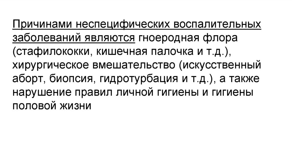 Причинами неспецифических воспалительныхзаболеваний являются гноеродная флора