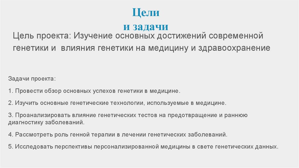 5. Исследовать перспективы персонализированной медицины в свете генетических данных.
