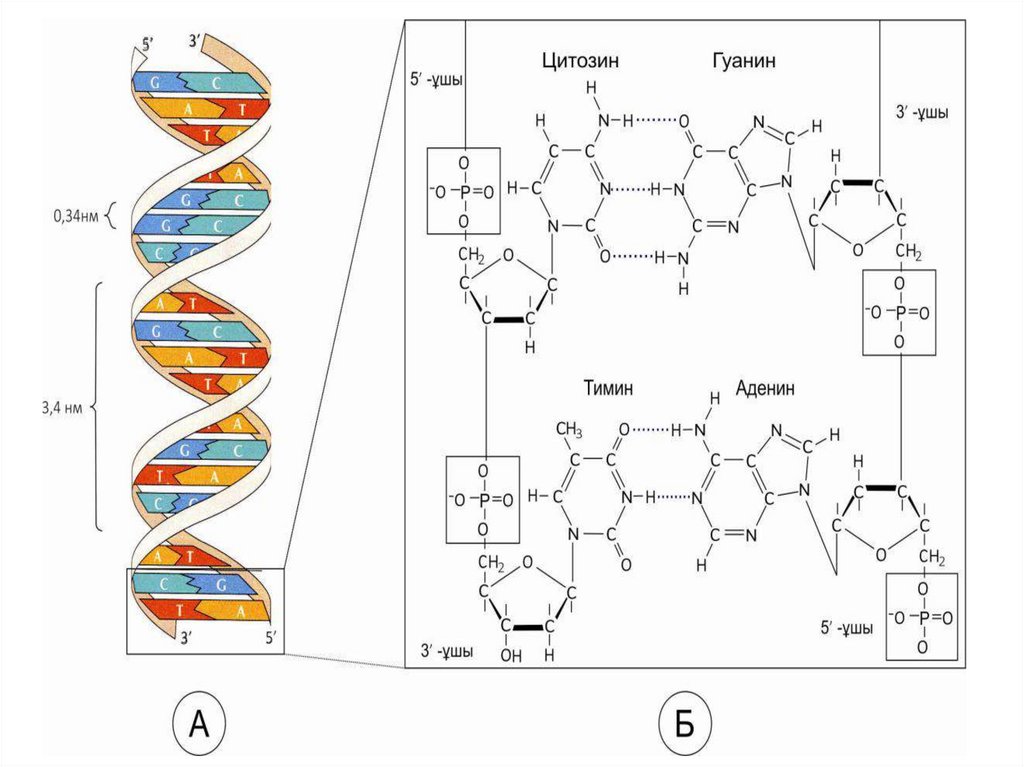 тізбекті молекуланың негізінде бір-біріне ұқсас екі қос тізбекті молекулалар