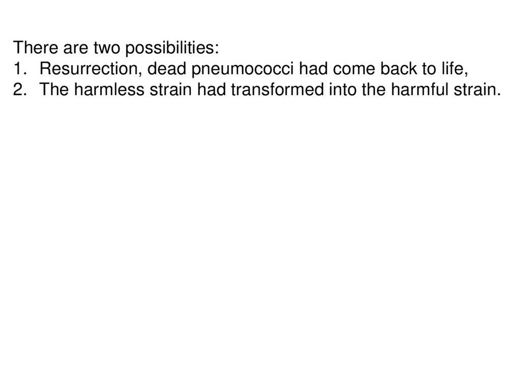 There are two possibilities:1. Resurrection, dead pneumococci had come back to life,