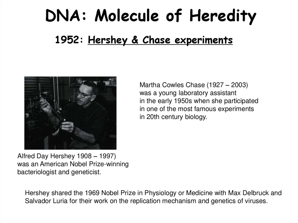 DNA: Molecule of Heredity1952: Hershey & Chase experiments